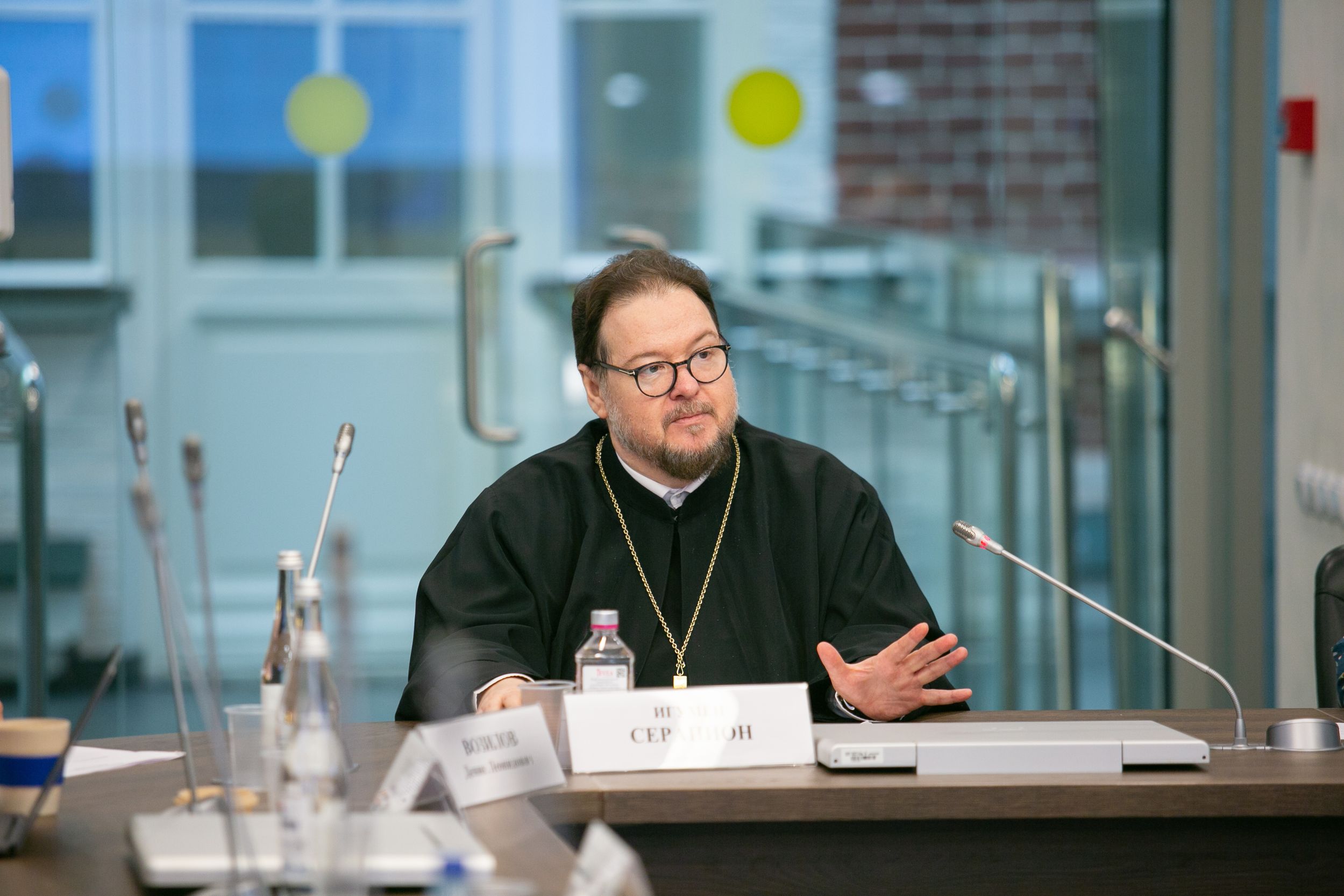 В своем выступлении игумен Серапион затронул различные аспекты взаимодействия педагогов с обучающимися и их родителями, представляющими различные религиозные конфессии. Он привел примеры затруднений, которые испытывают педагоги в ходе такого взаимодействия, и охарактеризовал возможные пути решения возникающих проблем с учетом норм действующего законодательства, прежде всего закона «Об образовании в Российской Федерации».