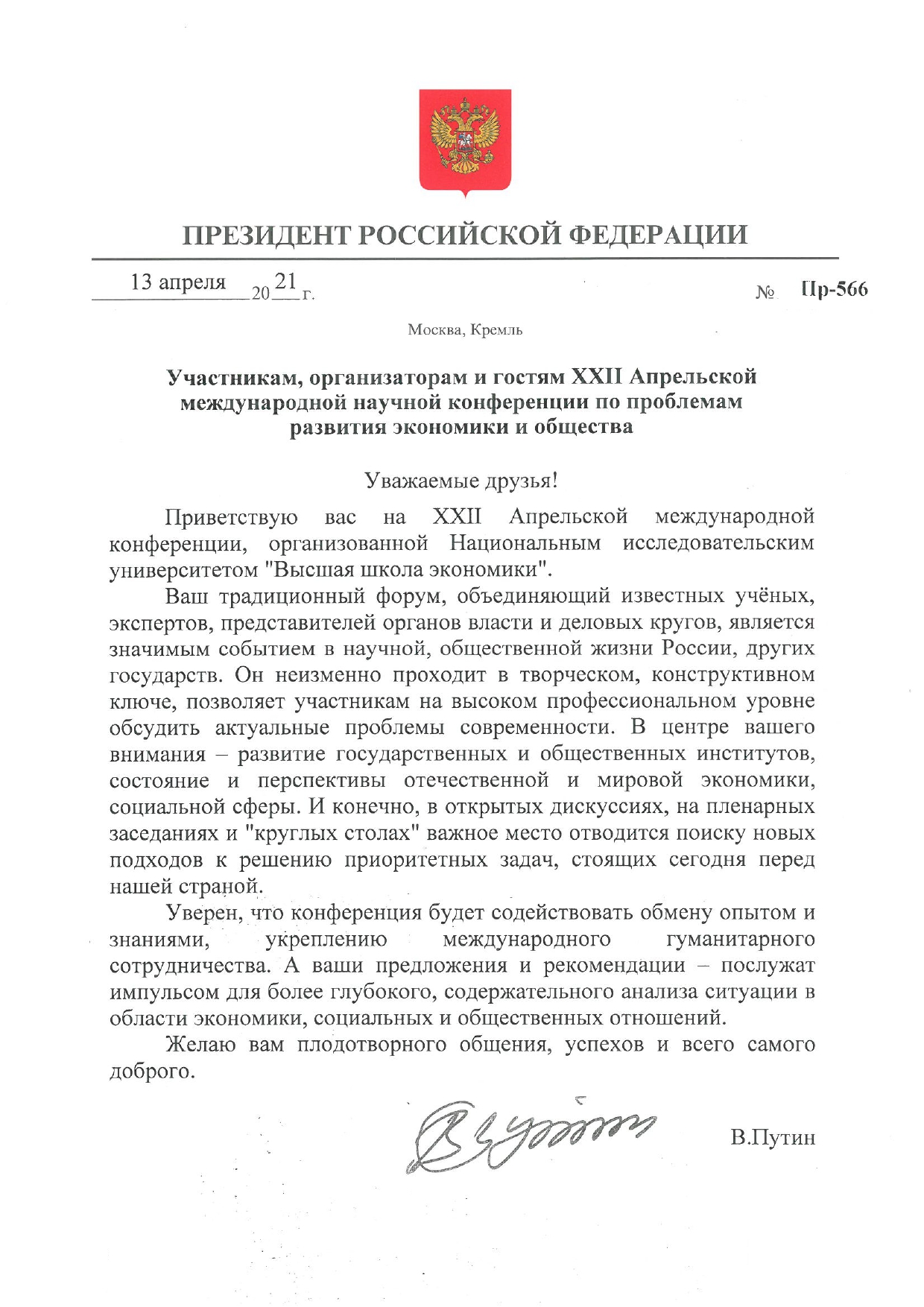 Приветствие Президента В.В. Путина участникам Апрельской конференции (jpg)